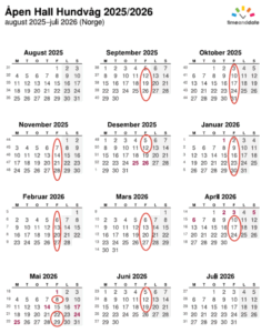 Det skal være åpen hall de datoer som er markert med rød ring: